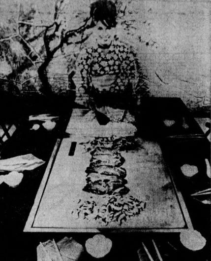 The Japanese Steak House enjoyed (mostly) good reviews during its first few years (see “A Steak House Decision”, “Fine Japanese Cooking at Steak House”, and “Family Out”) though Donald Dresden, a graduate of French cooking school Cordon Bleu, had some criticism for the restaurant: